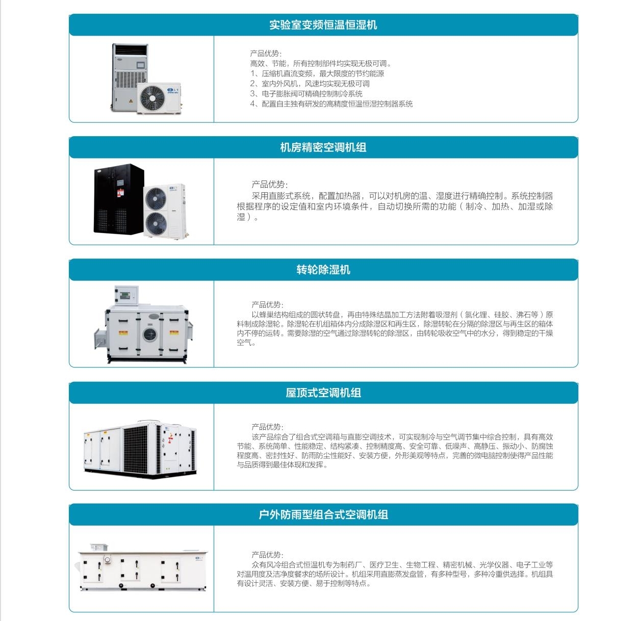公司深耕制冷與空氣處理賽道,主營工業除濕機、加濕機、恒溫恒濕機、轉輪除濕機、機房精密空調、防爆制冷設備及各類特種空調機組,產品覆蓋調溫除濕、凈化空調、直膨式空氣處理、風(水)冷冷水機組等多元場景,為客戶提供一站式溫濕度控制解決方案。憑借成熟的技術積累與定制化服務能力,非眾制冷的銷售與服務網絡已遍及全國,廣泛應用于電子制造、醫藥衛生、檔案倉儲、地下工程、電力通訊、航空航天等多個領域。